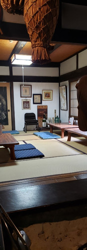 七福山の建物は、今から55年前に岩屋ダムの底に沈むはずだった築170年の古民家を今の場所に移築したもの。囲炉裏もあり、一歩足を踏み入れるとどこか懐かしいあの日の風景の中にタイムスリップしたかのよう。